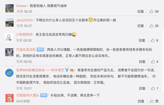 李斌这一席话被现场人员录制成视频后发到网上引发激烈的讨论,作为一家电动汽车公司的老板,李斌的言语或不存在误导,或是个人对电车和油车的独特见解,但是在网络上还是引发激烈的讨论。