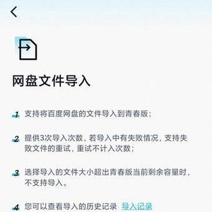 【改了又没完全改,#百度网盘青春版不支持分享链接#】在百度网盘青春版中,用户无法将网盘中的文件生成分享链接,也无法识别分享链接。此外,该版本中,用户可用空间仅有10G,从普通版导入文件的次数只有3次。