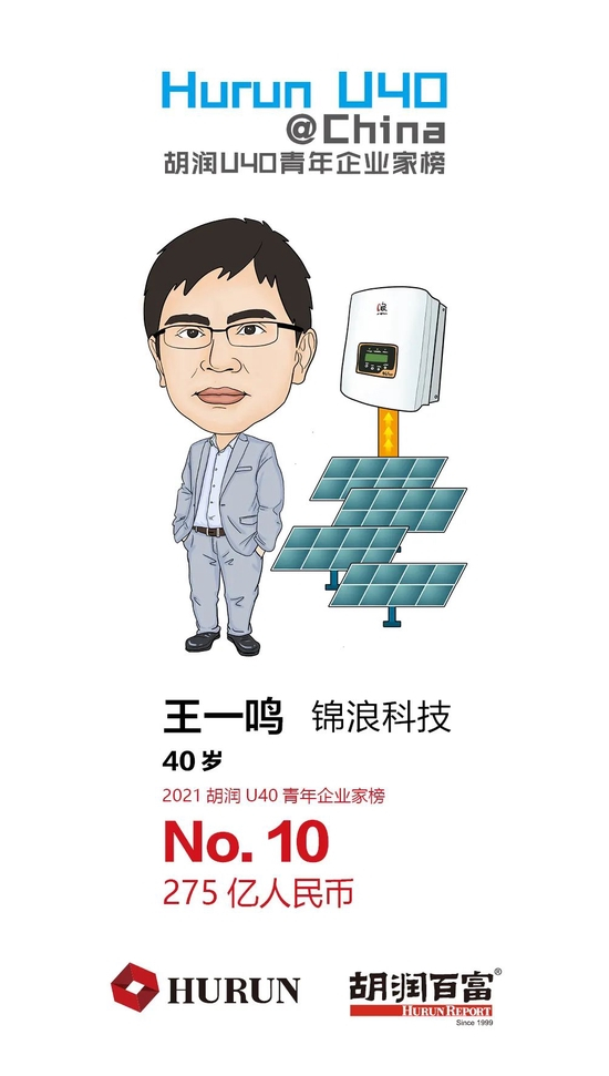 王一鸣 锦浪科技40岁的王一鸣以275亿财富首次上榜,位列第十。成立于2005年的锦浪科技是一家从事分布式光伏发电系统核心设备组串式逆变器的高新技术企业。今年上半年实现收入14.5亿元,净利润2.4亿元。