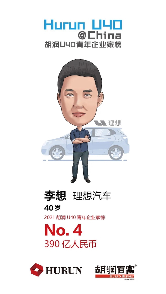 李想 理想汽车40岁的李想以390亿财富位列第四。理想汽车于今年8月成功登陆港交所,成为继小鹏汽车之后第二家赴港上市的新能源汽车企业,目前市值2,000亿元。理想汽车位列去年胡润中国500强第50名。