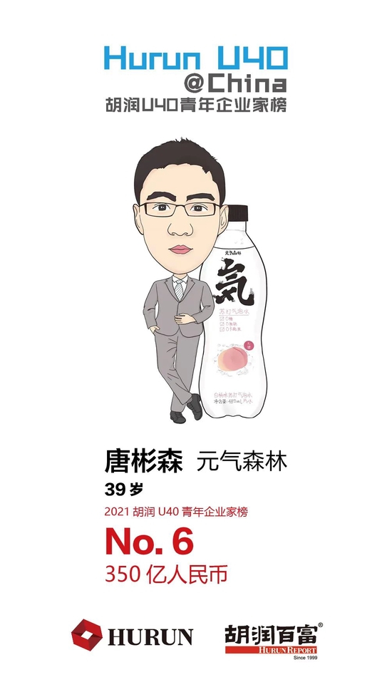 唐彬森 元气森林39岁的唐彬森以350亿财富首次上榜,位列第六。成立于2016的元气森林是新晋的创新型饮品公司。目前元气森林的估值已达到950亿元,最近首次登上《2021全球独角兽榜》便进入前十名。