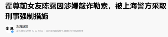 12月23日下午,澎湃新闻记者从上海市公安局徐汇分局获悉,因陈某涉嫌敲诈勒索,已于12月22日对陈某采取取保候审的刑事强制措施。