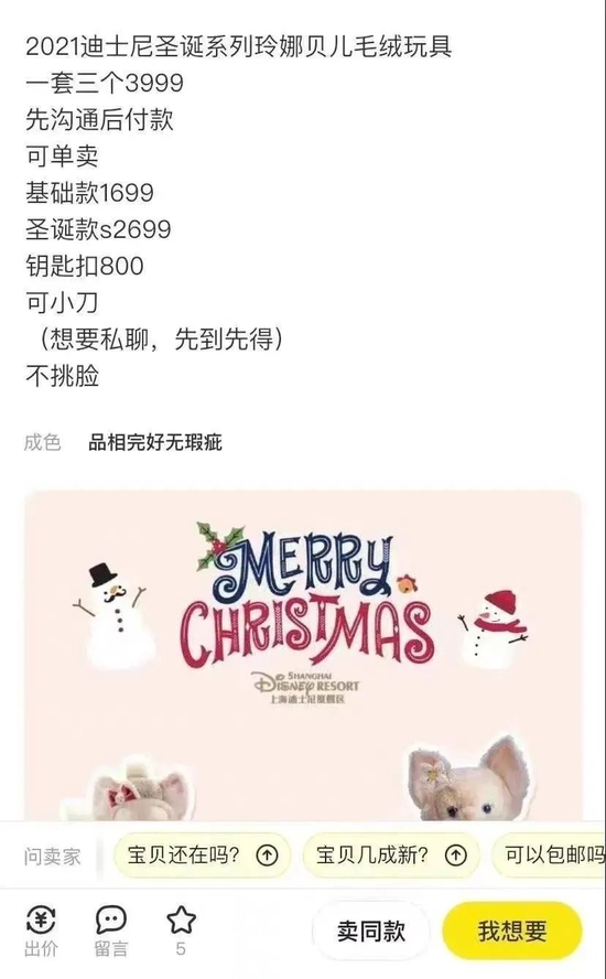 这让不少游客和粉丝感到失望。而与此同时,当天晚上二手平台开始出现代购上新相关产品的销售链接,还有不少消费者开出高价求购玲娜贝儿相关商品。