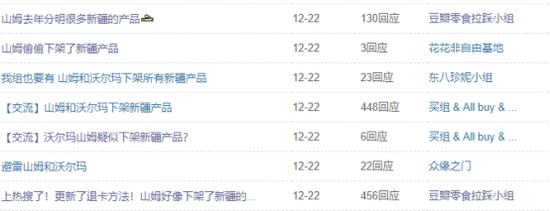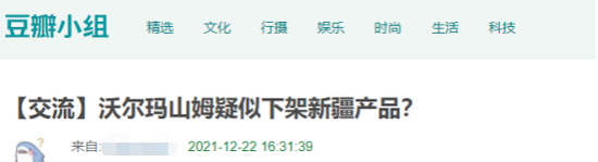 当天,有人在豆瓣上表示“山姆偷偷下架了新疆产品”、有人则表示今后不会在山姆购物,“避雷山姆和沃尔玛”。