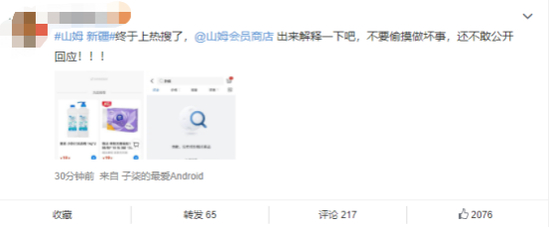 对这一情况,有网友直接@山姆会员商店官方账号,要求“解释”:“#山姆 新疆#终于上热搜了,@山姆会员商店出来解释一下吧,不要偷摸做坏事,还不敢公开回应!!!”