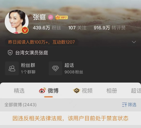 突发!张庭3300万粉丝抖音号被暂封,夫妇微博被禁言!曾一场直播带货2.5亿