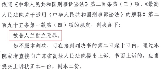 对于兰世立当前的无罪判决,公诉机关是否会提起上诉?根据兰世立介绍,广东省广州市中级人民法院的刑事判决书于2021年12月17日出具,并于2021年12月20日宣判。而据刑事判决书,如不服该判决,可在接到判决书的第二日起十日内,通过该院或者直接向广东省高级人民法院提出上诉。据兰世立介绍,目前检控方并未提出上诉,也就是说,上诉时限已过。