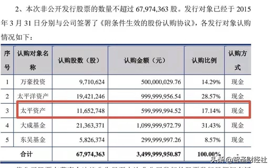 2015年3月31日,万达信息突然发布一份非公开发行预案。预案显示,万达信息拟以51.49元每股的价格,向万豪投资、太平洋资产、太平资产、大成基金和东吴基金等5名特定投资人,发行不超过6797万股股份,募集不超过35亿元资金。