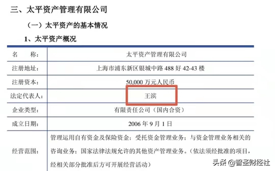 斯时,王滨担任中国太平保险控股公司的董事长,同时兼任太平资产管理公司的法人代表。