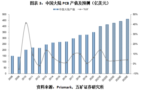 据Prismark预测,中国大陆的PCB产值增速在2020年和2021年连续两年增大后将减小,并趋于平缓,如图表3所示。同时,Prismark预计,2020—2024年中国大陆PCB产值年复合增速为4.9%。按此增速计算,2025年维嘉科技PCB钻孔机销量预计为876.45台,远不及2300台;PCB铣边机销量预计为85.1台,不及200台。