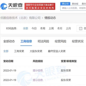 1月19日,优酷信息技术(北京)有限公司发生工商变更,阿里巴巴文化娱乐有限公司退出股东,新增股东上海全土豆网络科技有限公司,持股100%。天眼查App显示,阿里巴巴文化娱乐有限公司参股日期为2019年7月24日,退股日期为2022年1月19日。