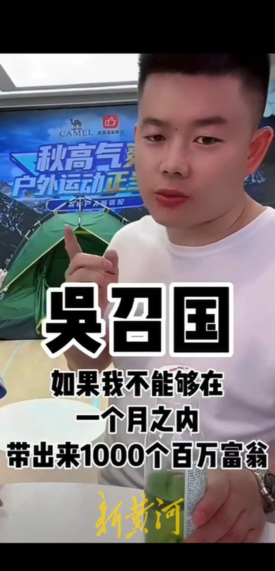 新黄河记者注意到,根据总代理刘总朋友圈的一段视频显示,吴召国曾公开发声表示,要在10月份这一个月内带出1000个百万富翁。