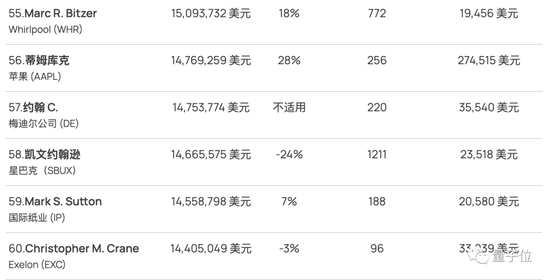 Equilar报告的2020年年薪Top 100 CEO的年薪排名,收入最高的是通用电气、耐克、微软的老板,4000多万~7000多万美元。