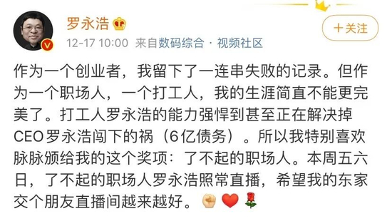 为理想充过值,为现实还过债,老罗似乎收拾好了,准备赶往下一个风口。