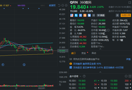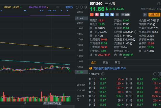 360数科目前在美股上市,该股昨晚一度大跌超11%,其后出现大幅反弹,但收盘仍跌2.07%,最新市值30.66亿美元。