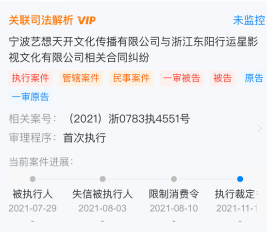 而因艺想天开公司暂无可供执行的财产,法院裁定终结本次执行程序。目前,艺想天开公司已被纳入失信被执行人名单并限制消费。