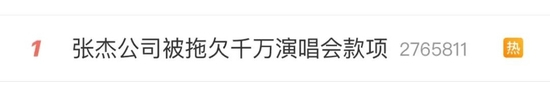 1月25日,#张杰公司被拖欠千万演唱会款项#冲上热搜榜的第一名。