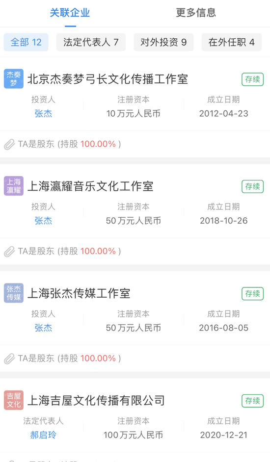张杰旗下关联12家公司