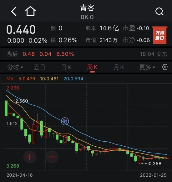 2021年6月,青客股价跌破1美元。而根据纳斯达克市场退市规则,股价长期低于1美元或面临强制退市风险。