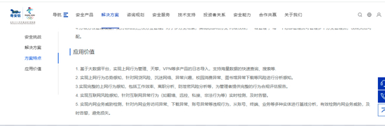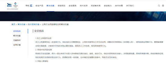 记者调查中了解到,除了深信服之外,不少国内安全软件公司均有开发类似的行为感知系统。《科创板日报》记者查询国内另一家安全厂商奇安信的官网,发现其同样推出了上网行为风险感知方案。