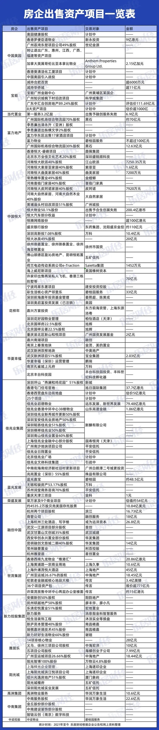 据乐居财经不完全统计,近期还有雅居乐、碧桂园、招商积余、富力、龙光、中南、禹洲、祥生、荣盛、万科海外等多家房企将旗下资产“摆上货架”。