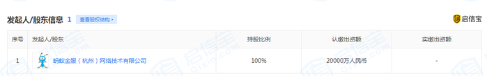 股权穿透图显示,该公司由支付宝(杭州)信息技术有限公司间接全资持股。