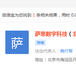 据启信宝资料显示,2月14日,萨思数字科技(北京)有限公司成立,法定代表人为倪行军,注册资本2亿人民币,经营范围含软件开发;信息系统集成服务;计算机系统服务等。