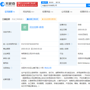 华晨宝马汽车公司法定代表人变更 宝马持股比例升至75%