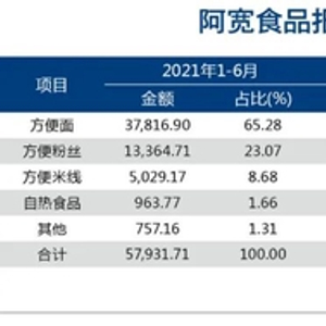 经营业绩方面,方便面和方便粉丝撑起了阿宽食品的主要收入。