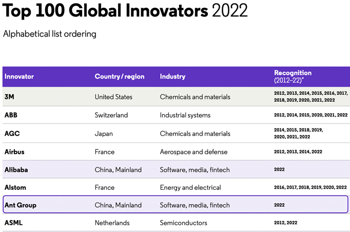 全球创新最厉害的100个机构,蚂蚁、华为等中国企业入选