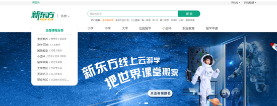 至今,新东方已经将重点资源转向与K-9学科类培训服务无关的教育产品及服务。新东方网站显示,其主要业务分三大板块,大学考试(包括英语四六级、考研)、国际教育、英语学习。