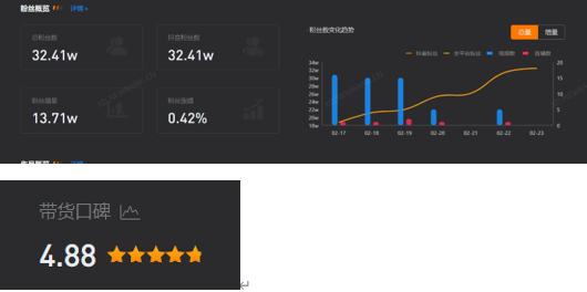 据新抖平台数据显示,东方甄选近期粉丝量仍在持续上涨,带货口碑目前在4.88分。
