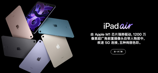 据介绍,新iPad Air在多方面进行了升级:芯片升级,搭载M1芯片;摄像头升级,搭载1200万超广角前置摄像头;网络方面,支持5G。