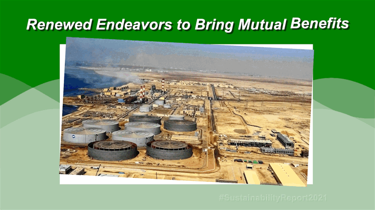 通过新技术、新工艺、新材料以及高效负责的管理,保护周边沙漠物种和海洋环境;同时开展植树造林、东部清洁运动、海岸垃圾清理等活动,改善生态环境,助力打造生态友好的“绿色沙特”和“绿色中东”。