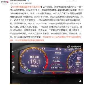【#大众探岳遭全国多地车主投诉#】去年8月份,湖北孝感的陈先生购买了一辆一汽大众探岳轿车。可仅过了2个月,车辆突然报警提示颗粒捕捉器出现堵塞,导致汽车油耗成倍的增长。事后,4S店通知陈先生,一汽大众厂家对车辆颗粒捕捉器堵塞问题进行了全面升级。然而今年1月份,陈先生的车辆再次发生相同问题。对此,4S店工作人员反复表示,一汽大众探岳这款车出现的颗粒捕捉器堵塞的问题,仅仅只是个案。事实上,这并非个例,一些武汉市民购买的该系列汽车也出现了问题。记者从4S店了解到,一汽大众厂家曾对相关车辆进行了升级优化,但不少车主表示,问题并未解决。陈先生说,厂家要么把问题解决,要么退换车,不应该让用户承担。一汽大众工作人员表示,会向相关部门反映,尽快反馈。然而,至今记者也没有等到对方答复。#12省市315行动大联播# #守护我的消费权益#