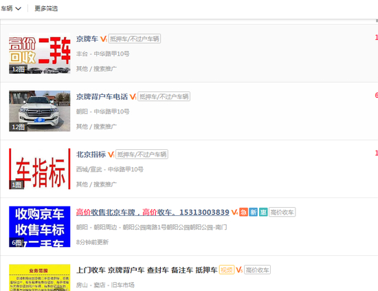 “第一汽车网”平台销售表示可带号买卖、租用京牌。