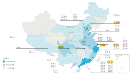 截至目前为止,绿茶餐厅全国已经有236家餐厅,其中2020年新增60家,2019年新增56家,旗下店面在两年间翻了近一番。此前,2008年,绿茶餐厅在杭州开出第一家直营餐厅店铺之后,2009年底绿茶开始进军北上广,用了十年时间,绿茶餐厅门店数量于2018年突破了百家。