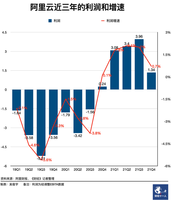 阿里财报报告显示,2022财年三季度(即2021年四季度)阿里云经调整后的EBITA利润为1.34亿元,同比扭亏为盈,环比略有收窄,原因是钉钉仍处于投入期。