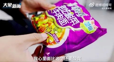 “当我知道了315晚会报道的事件之后,我心里比这个还要酸爽。”韦涛手拿着老坛酸菜面说。