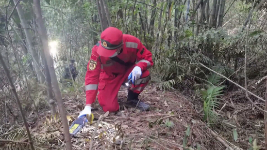 东航MU5735坠机点区域划定,救援人员拉网式搜寻第二个黑匣子。(视频截图)