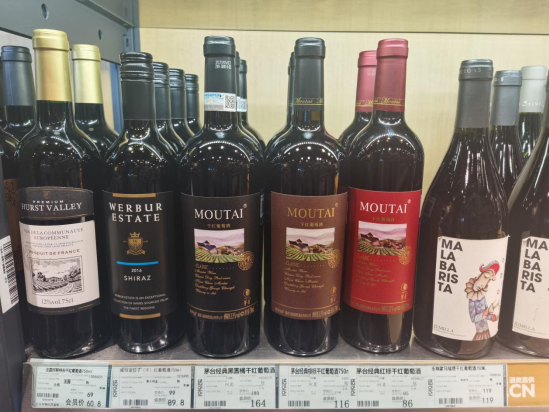 图:在众多葡萄酒陈列柜,茅台葡萄酒被放在最下层右方角落里
