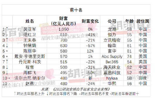 提供有质量的榜单与调研的胡润研究院发布《2022胡润全球白手起家女企业家榜》