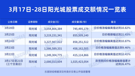 值得注意的是,3月25日,阳光城上演天地板,经历跌停与涨停,股价振幅达21.45%,当天成交额达32.19亿元,较为活跃。