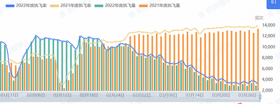 疫情进入第三年,受到疫情反复的影响,民航业仍处于低迷阶段。尤其3月份至今,民航客运航班量断崖式下滑,甚至不及2021年同期的一半。