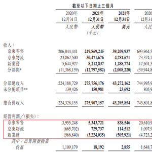 2021年,包括京喜在内的新业务和京东物流均处亏损状态,其中新业务经营亏损近106亿元。同时,该公司全年自由现金流也较上年末减少近87亿元