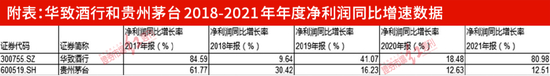如果按照当初招股书的比例推算,华致酒行2021年出售53°飞天茅台的营收为11.7亿元。不仅如此,通过2021年净利润增速对比发现,虽然基数不一样,但作为经销商的华致要远高于贵州茅台。2021年华致酒行净利润为6.76亿元,同比去年增长81.03%;而贵州茅台的净利润524.6亿元,同比去年增长12.34%。