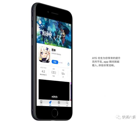 矛盾的是,iPhone SE3搭载的A15芯片功能十分强劲,系统也是最新的IOS 15.4,综合各平台跑分数据来看,A15的综合性能略超骁龙888和Gen1,相比于同系列的A14处理器也要快13.7%。网上有用户评论称,强大的性能本来能令iPhone SE3在游戏方面大展拳脚,A15也被誉为“征服《原神》的芯片”,然而其较小的屏幕尺寸和较低的清晰度,却又拉低了体验感,成了一款“瘸腿”的产品。