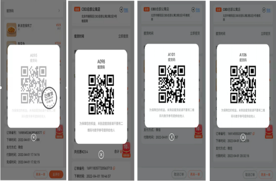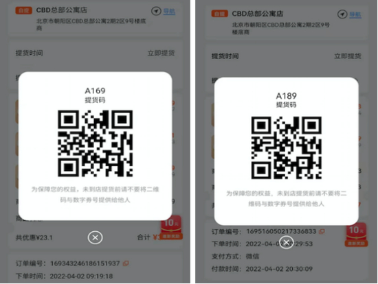 图4:4月2日在CBD总部公寓店所下自提单的提货码