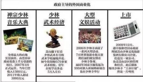 “天下第一名刹”的商业化运作十分娴熟,除了对外直接投资控股,还包括通过注册公司和商标,发展“功夫”经济;在淘宝开店、售卖修禅练功用品及迎合年轻人的创意物品,以及对其他寺庙进行托管等。