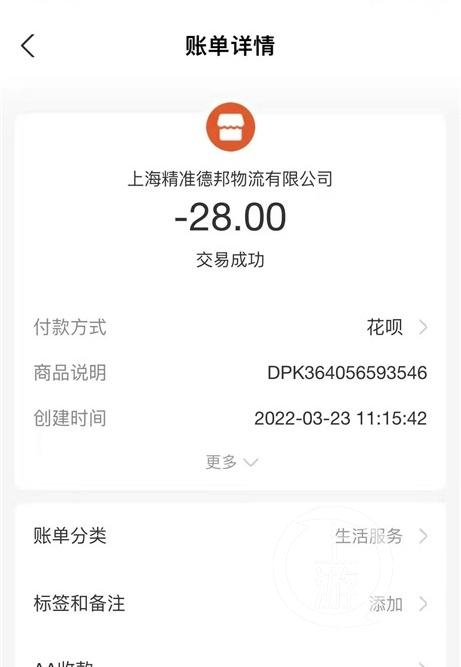 伍先生于3月23日签收到的到付德邦快递。图片来源/受访者供图